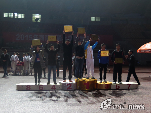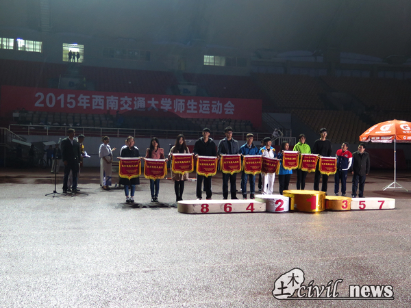 之后的体育道德风尚团体奖获奖团队有交运学院、地环学院、信息学院、峨眉校区、外语学院、公共管理学院、经管学院、数学学院、人文学院、建筑学院,由校团委书记朱剑松颁奖,同时合影留念。教师甲组和乙组获奖名单仍需统计,计划在明天公布。