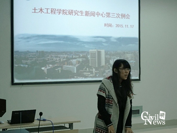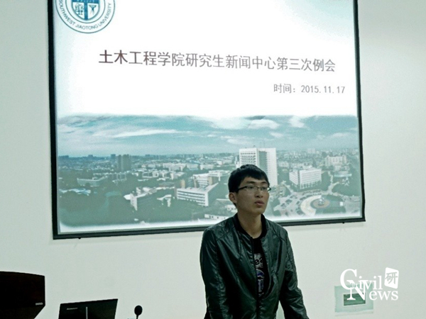 11月17日晚七点,土木学院研究生新闻中心第三次例会在九里校区隧道实验室召开。会议由何佳银主任主持,全体新闻中心工作人员出席会议。例会主要分为了三部分内容:工作整体总结,新媒体进展和聘书发放。