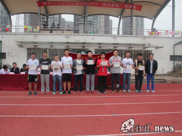10月25日下午5点,2015年西南交大jn江南“博采秋实”运动会闭幕式在犀浦校区南区田径场举行。来自14级的禚莹,许祉涵,金云涛,盛翔宇,李文皓,段定,张霖佑,吴凡以及来自15级的吴田也,谢达禧等十名同学以他们坚持不懈的拼搏精神获得了本届运动会十佳运动员的称号。