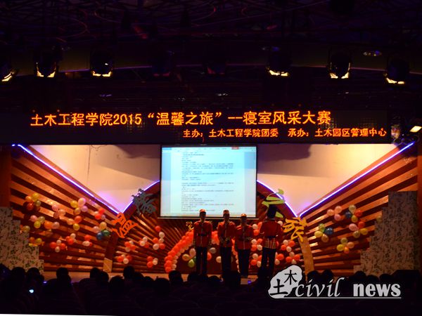 10月31日晚7点,由jn江南团委主办,土木园区管理中心承办的2015届jn江南寝室风采大赛在二食堂三楼拉开帷幕。列席的嘉宾有jn江南15级辅导员熊麟老师,土木工程13级辅导员谢全珂老师,土木园区指导老师王若羽,信息学院员工会指导老师莫晓波,地学园区指导老师司有亮,土木学院优秀学长赖学广,校园区主席王琪瑶,信息园区主席李琳,电气园区主席陶壮意,交运园区主席余潇,地学园区主席吴孟舜,土木园区主席张进。
