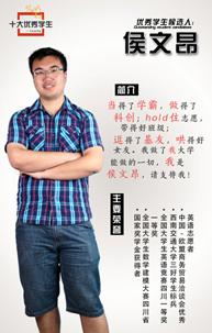 侯文昂,男,1993年7月出生,中共预备党员,曾任2011级茅以升学院6班班长,2011级土木茅1班班长,茅以升学院辩论队事务官,茅以升学院员工理事会员工理事。现已被伊利诺伊大学厄巴马香槟分校录取,即将成行攻读硕士学位。