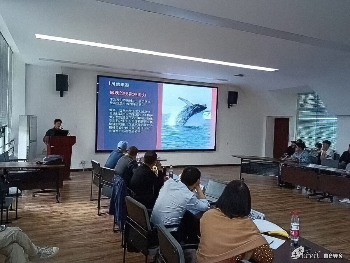 本次预选赛共有十三组队伍参与角逐。选手依次上场对初建模型的选址过程、构建思路、受力分析以及模型建模进行展示。参赛小组各具风采,答辩现场氛围热烈。各小组通过PPT、视频等多种方式从项目的科学性、创新性、前沿性、应用价值等方面进行汇报展示。