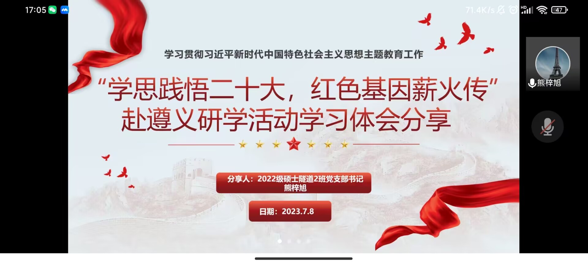 2023年7月8日下午3:30,2022级硕士隧道2班党支部开展了学习贯彻习近平新时代中国特色社会主义思想主题教育。