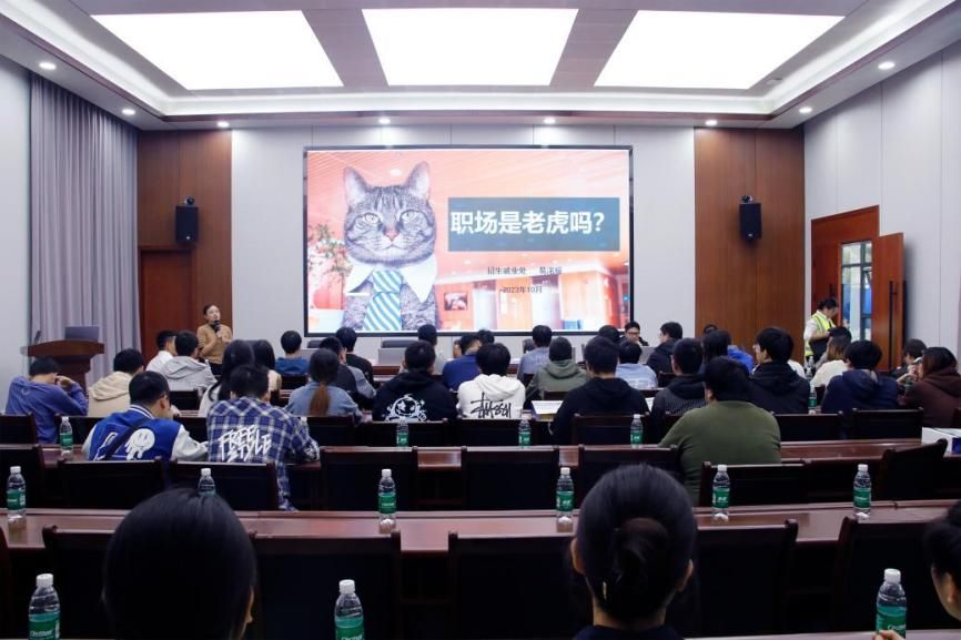 在参观结束后,同学们回到会议室,西南公司人力资源部经理为大家介绍了现场嘉宾领导,众多领导和老师出席本次交流会。会中,江南体育官方网站人才招聘处就业指导科易洺瑶老师针对职场认识为同学们开展了就业指导,同学们受益匪浅。
