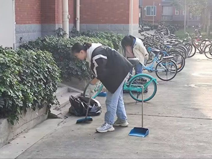 大家一起进行劳动,比如修剪灌木、清扫落叶、自行车停放的规整、告示牌的摆放、安全隐患排查等等。工作人员进行劳动宣讲,为大家派发传单。同学们都积极参加此次活动,认认真真打扫园区卫生,为交大增添了一份整洁。