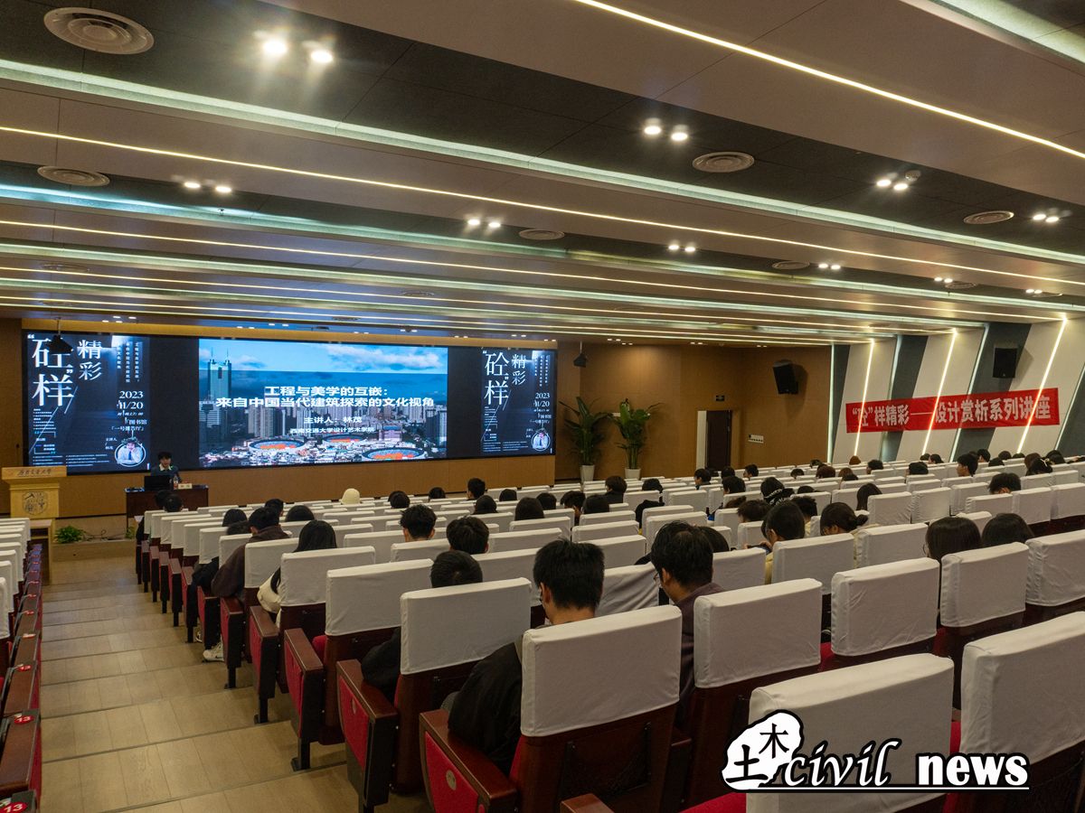 11月20日,由jn江南团委和设计艺术学院团委共同主办,jn江南员工会、设计艺术学院员工会及设计艺术学院研究生会联合承办的“砼”样精彩美育系列活动第一期设计赏析讲座—— “工程与美学的互嵌:来自中国当代建筑探索的文化视角”于江南体育官方网站犀浦校区图书馆一号报告厅举行。