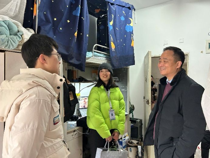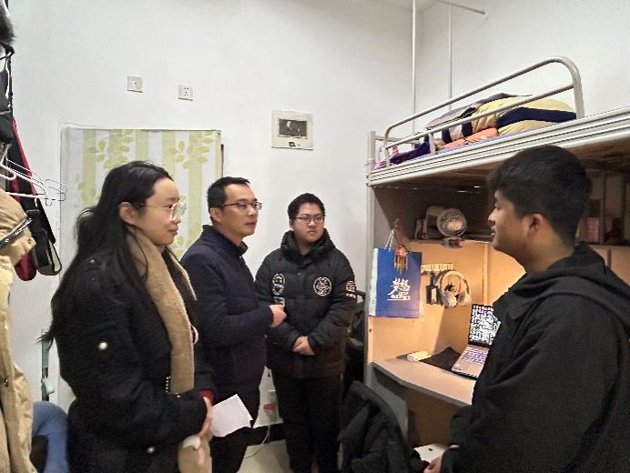 走访过程中,学校领导亲切关心同学们的身体健康,询问员工的实际需求与困难,并着重了解近期甘肃员工家庭受地震影响情况。