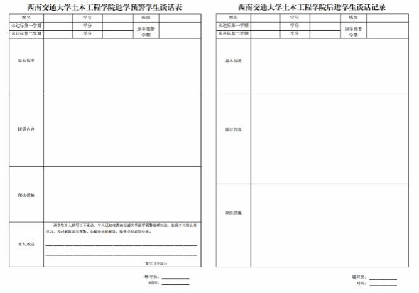 红土加油班2.0建立了退学预警员工档案库,精细化构建“一档一册”可追踪成长体系。制定红土加油班(学业帮扶)通知书、《JN体育退学预警员工谈话表》、《JN体育后进员工谈话记录》,并装档成册。落实辅导员对于退学预警员工的谈心谈话制度,随时跟进帮扶措施,帮助员工在一学期的前、中、后期不同阶段制定有效学习目标,实施个性化帮扶。