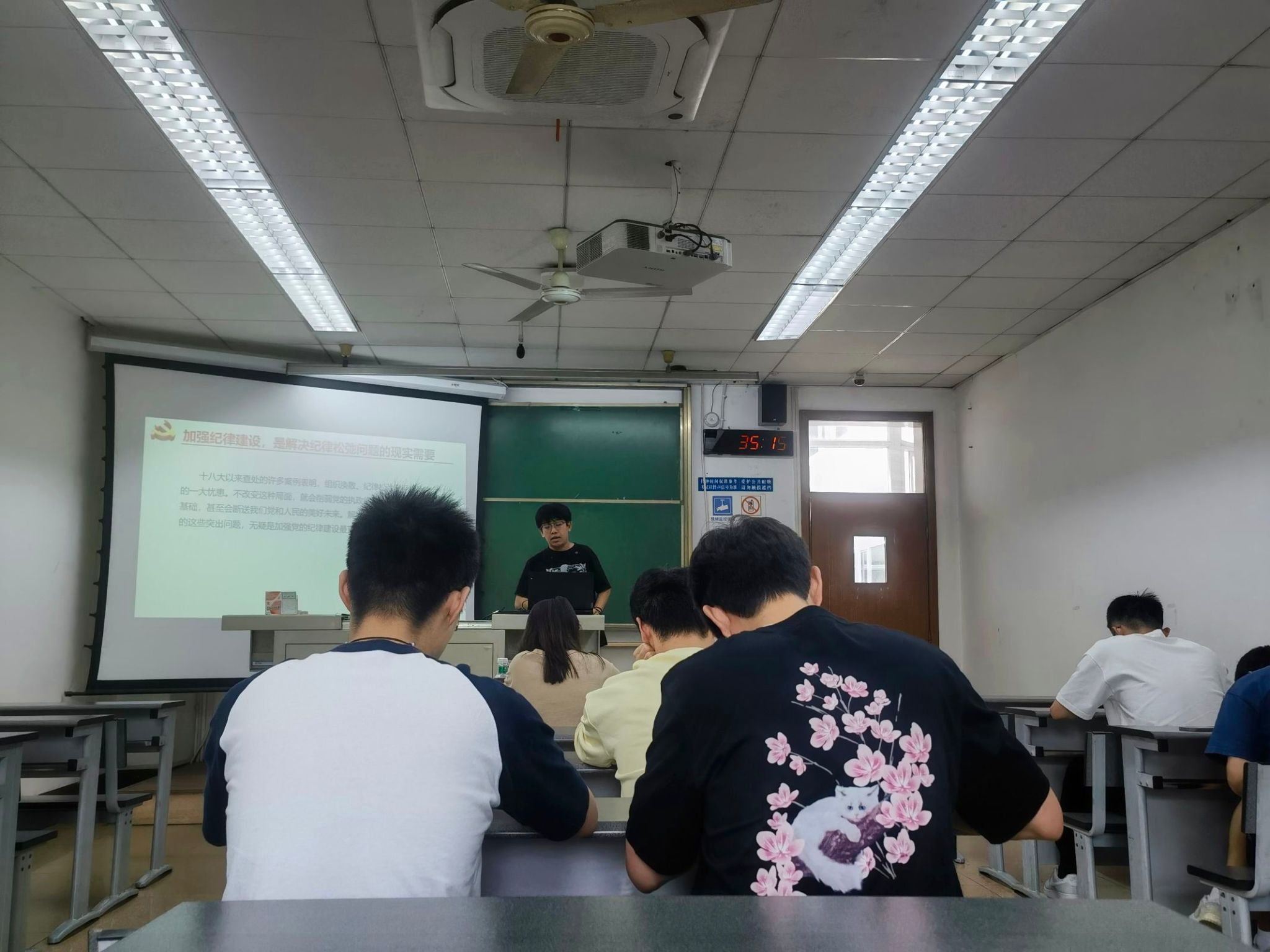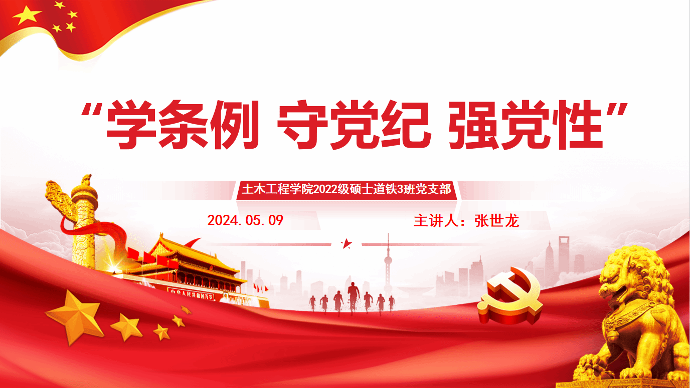 2024年5月9日下午14:30,2022级硕士道铁3班党支部于江南体育官方网站九里校区4304A开展党员大会,会议围绕“深入学习习近平总书记关于党的纪律建设的重要论述,原原本本、逐章逐条学习《中国共产党纪律处分条例》”相关内容开展。此次党日活动由支部宣传委员张世龙主持召开,共有10名党员和9名入党积极分子参加。
