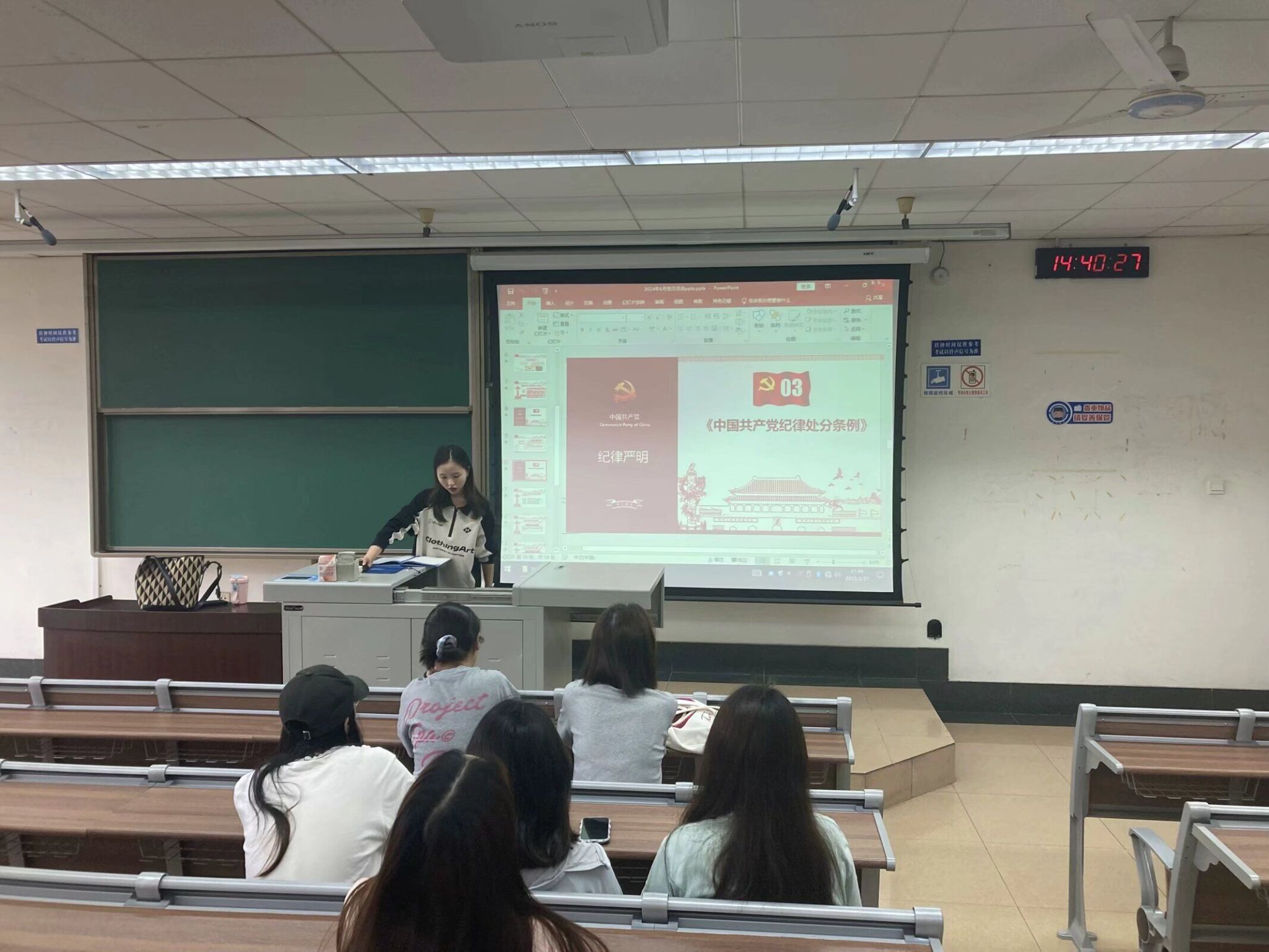 会议主要从学校思政课教育方面建设、五四青年寄语和《中国共产党纪律处分条例》三个面反进行讲解。十八大以来,党中央始终坚持把学校思政课建设放在教育工作的重要位置,党对思政课建设的领导全面加强,各级各类学校社会主义办学方向更加鲜明,思政课教师乐教善教、潜心育人的信心底气更足,广大青少年员工“四个自信”明显增强、精神面貌奋发昂扬,思政课发展环境和整体生态发生全局性、根本性转变。习近平强调,新时代新征程上,思政课建设面临新形势新任务,必须有新气象新作为。今年是新中国成立75周年,是五四运动105周年。新时代新征程上,全国各族青年听从党和人民的召唤,在科技创新、乡村振兴、绿色发展、社会服务、卫国戍边等各领域各方面勇当排头兵和生力军,展现出自信自强、刚健有为的精神风貌。党中央对广大青年充分信任、寄予厚望!