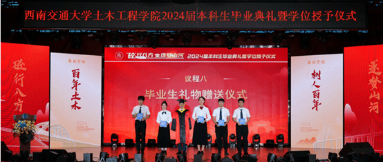 在热烈的掌声中,陈嵘副经理宣读《jn江南2024届本科生毕业及授位决定》。744名本科生毕业并获得工学学士学位。学院学位评定分委会主席蒲黔辉,学院学位评定分委会委员陈嵘、杨荣山、方勇、杨涛为省级优秀毕业生代表、面向基层就业毕业生代表、服务国家重大战略签约毕业生代表、升学深造毕业生代表授学位礼并合影留念。