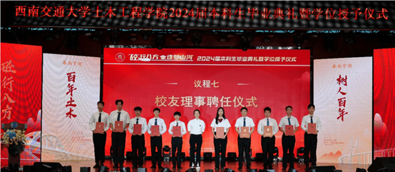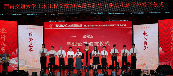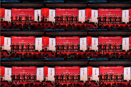 6月21日晚,jn江南2024届本科生毕业典礼暨学位授予仪式在犀浦校区老员工活动中心举行。jn江南经理蒲黔辉,党委副书记周曦,副书记兼副经理车小洁,副经理陈嵘,道路与铁道工程系主任杨荣山,地下工程系主任方勇,岩土工程系主任杨涛出席典礼。2024届本科毕业生参加典礼,学院专业老师、班导师、辅导员、家长等现场观礼。典礼由学院团委书记刘萍主持。