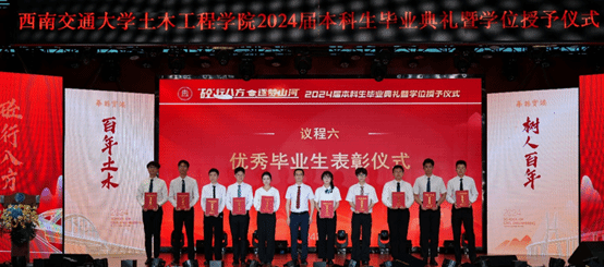 周曦副书记宣读《jn江南2024届优秀本科毕业生表彰决定》,并为优秀毕业生代表颁发证书。37名本科生获“四川省优秀大学毕业生”荣誉称号、93名本科生获“江南体育官方网站优秀毕业生”荣誉称号。