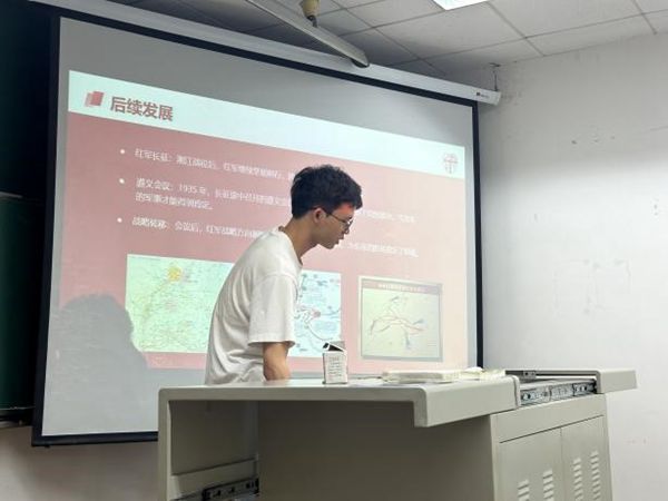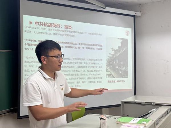 在参观完毕后,各同志回到九里校区J4408教室开展总结,随后支部党员代表曾耀懿、王龙同志作“赓续红色血脉”革命精神主题交流会红色故事分享,以了解先烈们的革命事迹,传承先烈的爱国精神,推动了员工党支部爱国主义教育建设。
