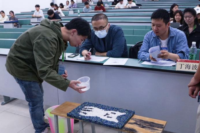 答辩开始前各小组带上自己的模型,分别进行透水性、抗剥落性以及抗滑性测试,并由科创中心相关的负责人员对透水程度、设备转动角度、进行记录,以此对模型的各项性质做出判断。