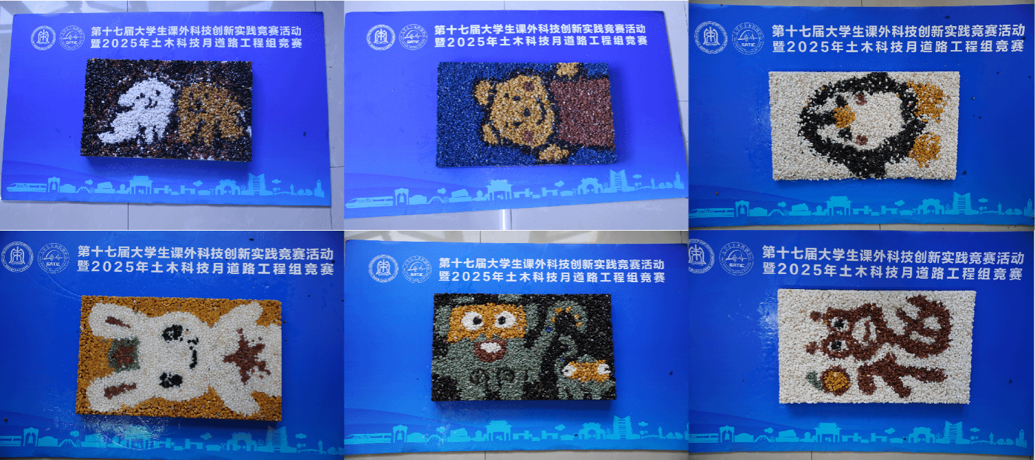 本次竞赛的赛题为“聚合物彩色透水铺装”,本届模型竞赛的主要内容包括:(1)道路模型的设计与计算分析;(2)道路模型透水性测试;(3)道路模型抗剥落性测试;(4)道路模型抗滑性测试;(5)道路模型美观度。此次比赛由陈述答辩与性质测试两部分构成,采用了先进行测试再进行答辩的方式。