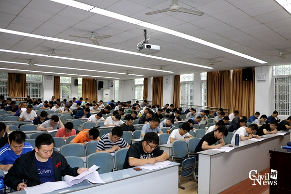 接着,江富长老师宣读了结业考试规则和注意事项。江老师强调,在考场内须保持安静,不得吸烟,不得喧哗,不得交头接耳、左顾右盼、打手势、做暗号,不得夹带、旁窥、抄袭或有意让他人抄袭,不得传抄答案或交换试卷、答卷、草稿纸,不得传递文具、物品等,不得将试卷、答卷或草稿纸带出考场。考试结束信号发出后,立即停笔,在监考员依序收齐答卷、试卷、草稿纸后,根据监考员指令依次退出考场。