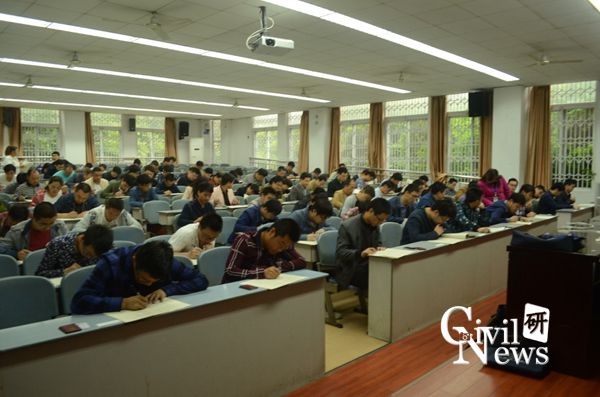 此次考试由继续教育学院老师监考,时间从上午8点到11点。监考老师认真负责,考场纪律井然有序,员工们都认真答完了考卷陆续离开了考场。