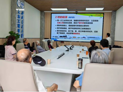本次桥梁知识的科普讲座,是jn江南离退休第一党支部的一次特色党建活动。在讲座中,赵教授向大家讲述了桥的起源、基本组成及类型,介绍了桥的一生及其社会价值,展现了公司在推动桥梁技术进步和发展方面所作出的突出贡献。