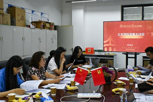 4.郑江书记布置了“土木学科发展大讨论”相关工作。要求在学科转型升级讨论提纲指引下,各系所就土木工程专业知识体系与培养体系该如何重塑来适应国家和行业高质量发展的需求、各学科专业及教师应如何规划和准备来迎接这一挑战、如何学科交融来拓展土木工程学科的内涵及如何开展“智能、绿色+”导向的有组织科研活动等内容展开讨论,并布置了讨论方式及讨论结果汇总及提交等要求。
