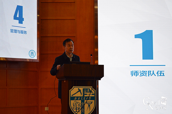 考核测评结束后,蒲黔辉经理做了以“轨道交通领域世界第一大学”建设目标为引领,全力支持交运学科全国第一,以土木一流团队建设为路径,全力推进学院创一流示范性改革的工作报告,包括改革背景与目标、改革举措以及改革推进情况。他说,土木学科前有堵截,后有紧追,改革形势十分紧迫,但是面对未来,机遇与挑战同时并存,我们应该顶着压力勇敢前行。