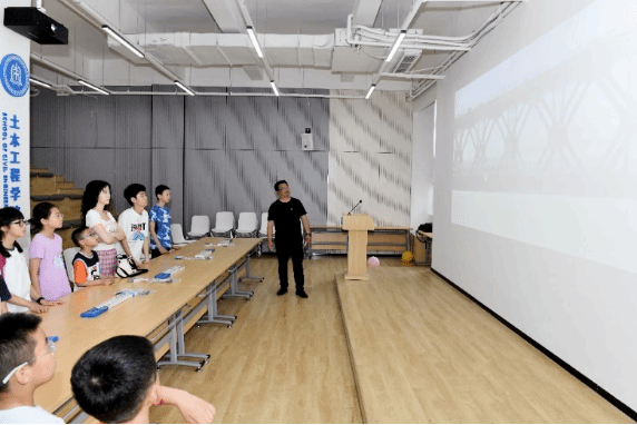 接下来,桥梁工程系党支部张方老师向家长和同学们介绍了我国桥梁工程的发展和本次活动的实践要求。本次活动分为成长组和挑战组,分别需要桥小苗们动手完成一座定制形式木桥和自创意形制木桥的搭建工作。完成作品均需满足造型美观、结构受力合理的要求,并具备一定的承载能力和稳定性。