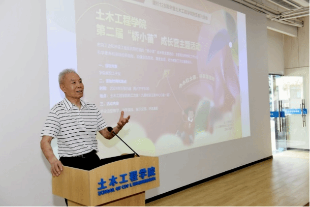 活动伊始,刘学信教授首先致辞。他表达了学校关工委对教职工子女的亲切问候和殷切期望。每一位少年儿童都是茁壮成长的青葱小苗,他们终将架设自己的桥梁连通未来。刘学信教授祝愿每一位桥小苗能在活动中激发出探索知识的乐趣,同时希望更多的人能够积极参与其中,让“桥小苗”学科知识成长营成为土木工程公司乃至学校的一道靓丽的风景线。