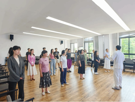 最后,在谭老师耐心细致的指导下,大家认真学习了八段锦功法的动作要领和调息方法,充分展示了教职工们朝气蓬勃、积极向上的精神面貌。