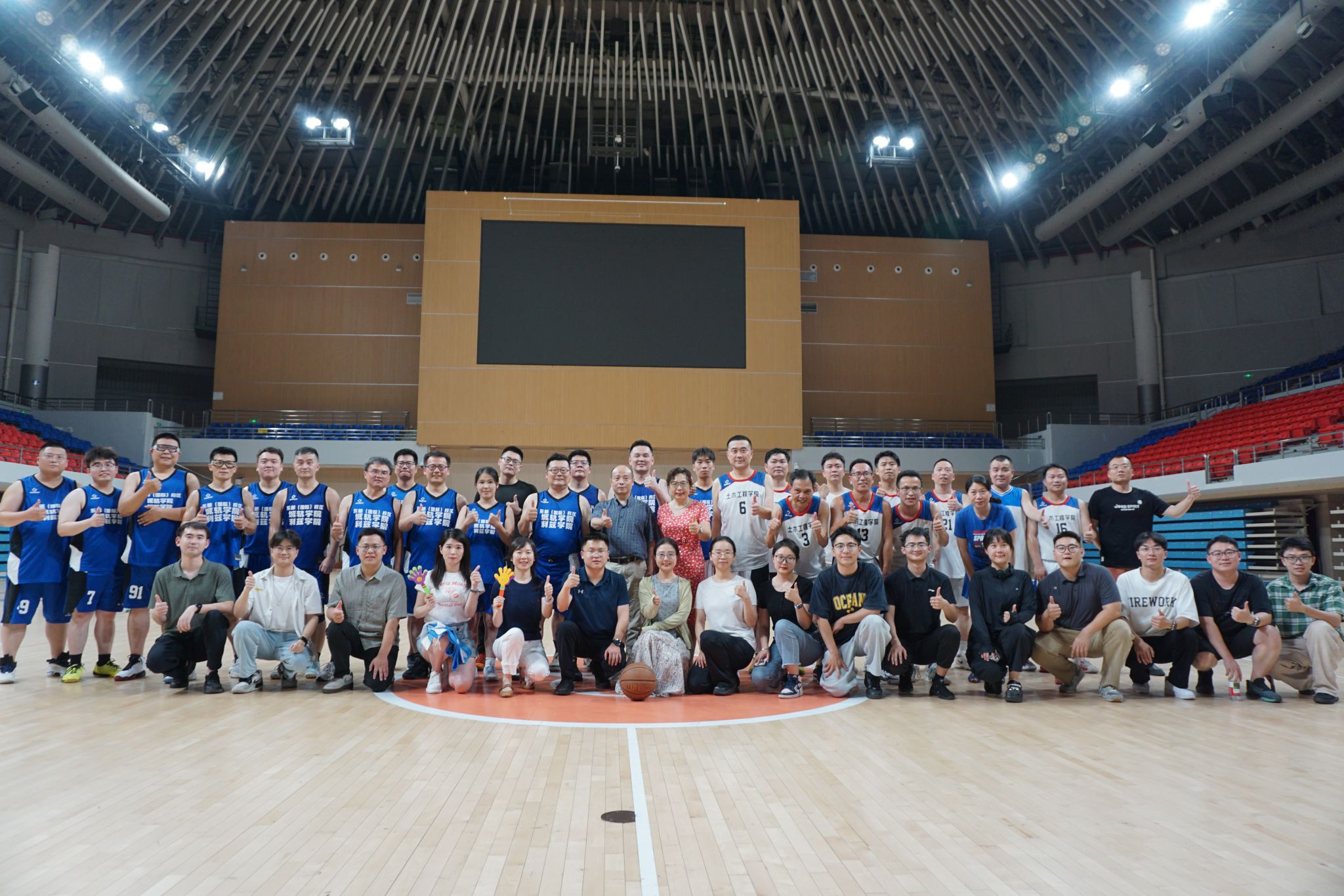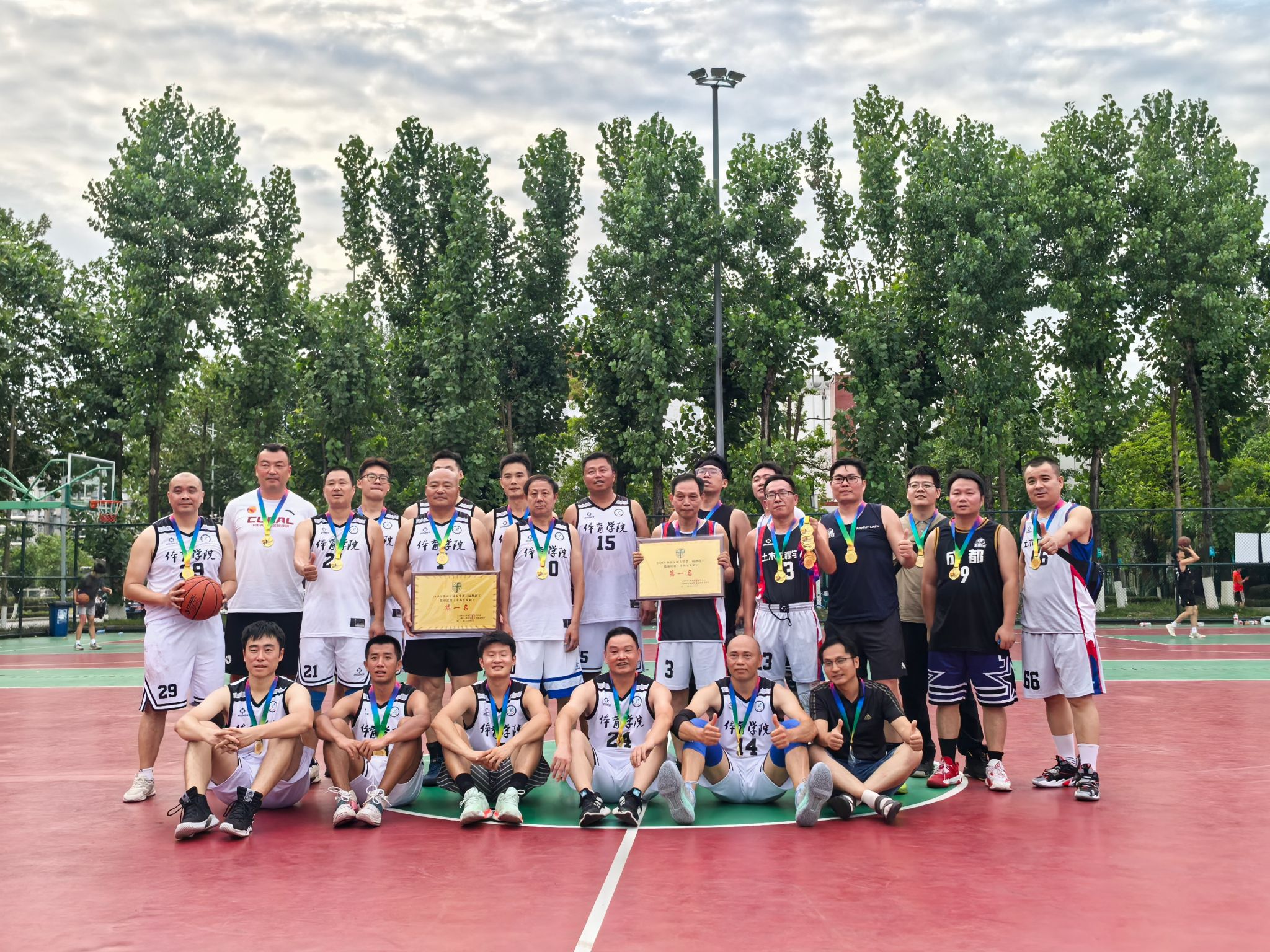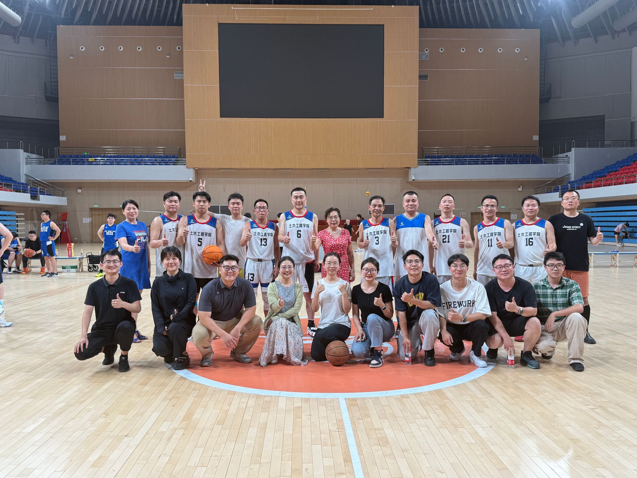 小组赛阶段,土木学院教职工队便将团队协作展现得淋漓尽致。训练时,领队石莹与教练陈远久会根据每位队员的特点,反复打磨战术配合,从挡拆掩护到无球跑动,每个环节都经过精心设计。比赛中,队员们凭借高度的默契,将战术执行到极致。面对对手的严防死守,他们没有单打独斗,而是通过不断地传球拉扯防线。后卫严涛精准的长传找到篮下空位的中锋严猛,后者轻松上篮得分;或是前锋陈昭吸引包夹后,及时分球给外线手感火热的崔凯、刘江,完成一记漂亮的投射。正是这种无私的分享球与紧密配合,让他们以小组赛全胜战绩昂首晋级。