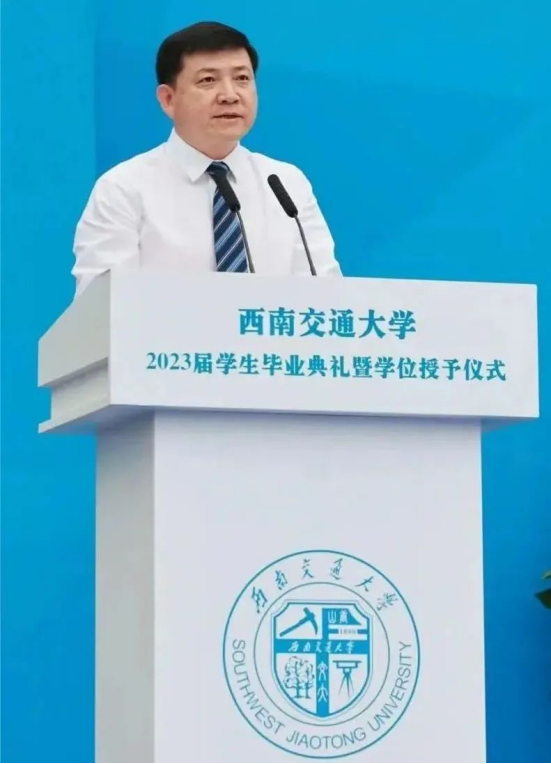 在母校2023届员工毕业典礼暨学位授予仪式上,王立新员工专程回母校作为员工代表进行了主题发言,借公司著名员工茅以升之言与全体交大学子共勉,愿交大学子都能以奋斗为桥梁,跨过人生崎岖坎坷,奔赴壮阔山海。