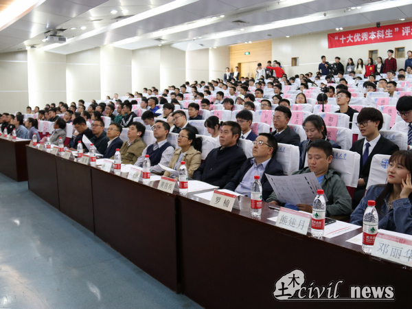 出席本次答辩会的嘉宾有:土木工程公司党委书记刘学毅教授、党委副书记周曦老师、副经理助理蒋雅君老师、学工组副组长刘萍老师、16级导师卫星老师、16级导师徐腾飞老师、16级导师潘毅老师、16级导师韩太昌老师、17级导师黄喜兵老师、17级导师罗楠老师以及学工组全体辅导员老师。