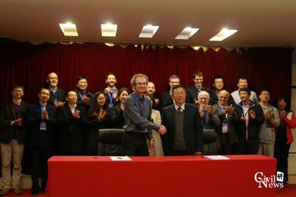 仪式上,江南体育官方网站土木工程公司党委书记刘学毅教授和法国Grenoble-Alpes University的Francois Nicot教授代表双方签订了合作协议。
