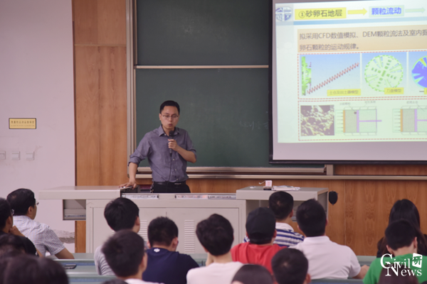 随后,各科研团队的教师代表依次上台,就所在团队的主要研究方向、正在开展的科研工作、团队在支持本科生科研等方面的情况进行介绍。参与此次活动的教师代表有:地下工程系的方勇教授、于丽副教授、郭春副教授、申玉生副教授;桥梁工程系的占玉林副教授、强斌老师;道路与铁道工程系的赵才友副教授、袁胜洋副教授、刘钰老师、陈德老师;岩土工程系的张迎宾副教授、杨涛副教授、徐华副教授、袁冉老师;建筑工程系的周强老师、许浒老师;交通土建系的王玉锁副教授;防灾减灾研究所的孙晓丹副教授。老师们的精彩介绍赢得了同学们的阵阵掌声。