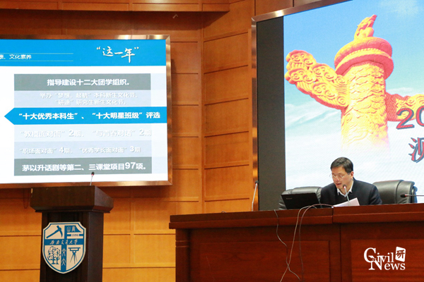 党委书记刘学毅、经理蒲黔辉首先代表公司党政班子对一年来的工作进行了述职汇报。刘书记从精准对标五个到位、全面推进“三全育人”工程和加快建立全国“双创”标杆以及当前存在的不足和问题等三个方面进行了总结。蒲经理从团队建设、教师队伍建设、人才培养、科研建设扥各方面所取得的成效和来年学院的发展改革进行了汇报。