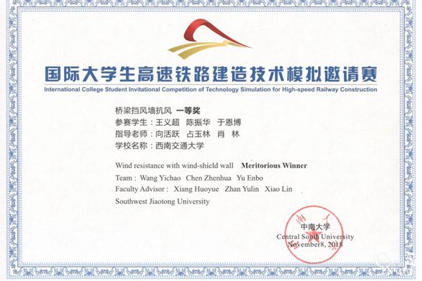 11月5日到9日,首届国际老员工铁路建造技术模拟邀请赛(International College Student Invitational Competition of Technology Simulation for High-speed Railway Construction)在中南大学举行。参加竞赛的高校有同济大学、东南大学、北京交通大学、湖南大学、合肥工业大学、天津大学、江南体育官方网站、中南大学、澳大利亚莫纳什大学(Monash University)、泰国北曼谷先皇科技大学(King Mongkut's University of Technology North Bangkok)等国内外十所高校受邀参赛。jn江南王义超、于恩博、陈振华3名同学参赛。