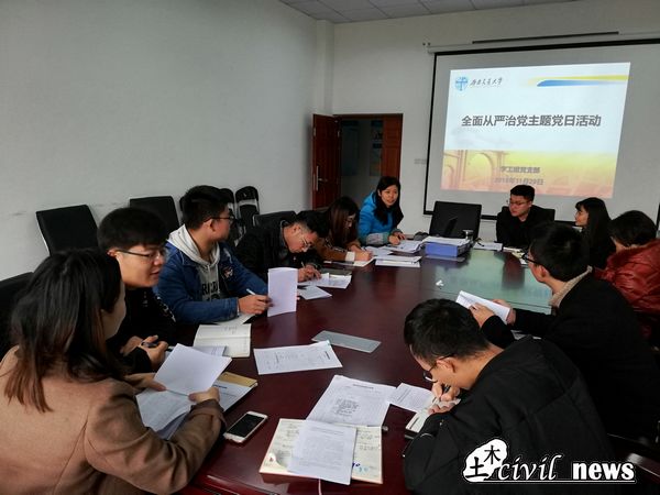 2018年11月29日下午16:00,土木学工组党支部在犀浦X4312会议室开展了“全面从严治党”主题党日活动,旨在推动党支部高质量、标准化建设。本次主题党日活动主要学习了《中共江南体育官方网站委员会关于贯彻执行< 中国共产党问责条例>的实施办法(试行)》和《中国共产党支部工作条例(试行)》。本次活动由党支部书记刘萍主持。
