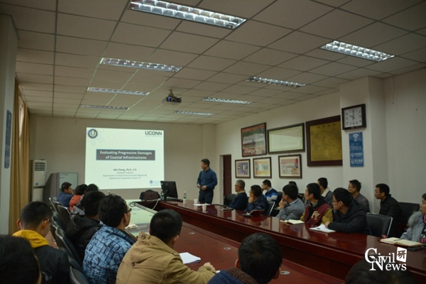 应桥梁工程系邀请,美国康涅狄格大学张伟副教授到访公司。12月19日上午,张伟博士在九里校区土木馆1324会议室带来了一场题为“沿海结构时变损伤评估(Evaluating Progressive Damages of Coastal Infrastructures)”的精彩学术报告。本次讲座由桥梁工程系李亚东教授主持,桥梁系多位老师、研究生聆听了报告,参与了交流。