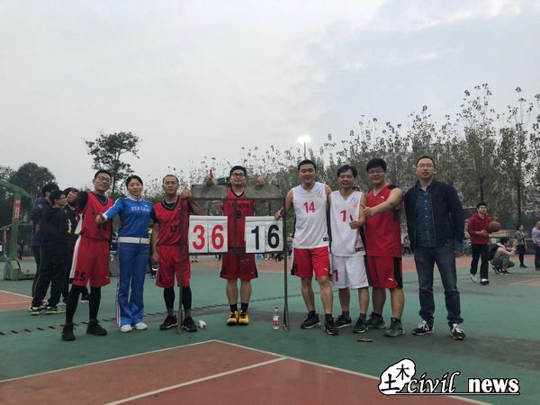 本场比赛上下半场均为15分钟,中场休息5分钟。经过土木学院老师在赛场上的顽强拼搏,至中场休息时土木与信息的比分为22:9。中场休息时由学院的女老师投掷篮球,一共十次,投进一次为本队加0.5分。jn江南教职工赛队投进三个,信息学院教职工赛队投进一个。下半场比赛进入白热化阶段,土木学院选手一往如前的拼搏,至比赛结束,比分已比分变成34:20,中场休息设置女老师投篮球环节,土木学院王楠老师投进三球,最终比分为35.5:20.5,土木学院战队取得优胜。
