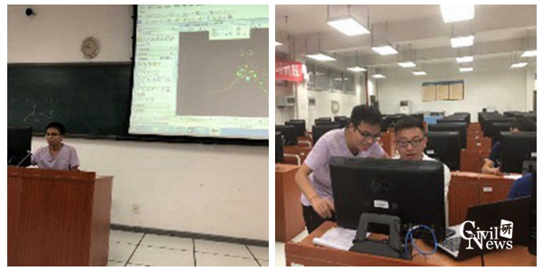 7月25-26日:爱达科公司李政翰老师、邓国阳以实例为基础进行了ORD(Open Roads Designer)、OBM(Open Bridge Modeler)软件讲解,通过导入地形模型到道路设计全过程和从桥梁上部结构到下部结构,以及桥面附属结构设计等。为大家讲解了各阶段的建模过程,对于建模过程中涉及到较多桥梁专业知识,同学们也积极地向在场的专业老师请教。
