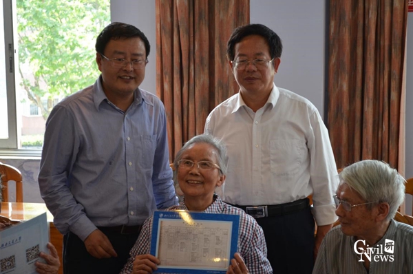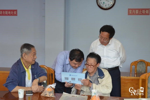 接下来,谭处长和刘书记将54级老员工们当年的在校成绩单依次颁发给大家,并一一合影留念。