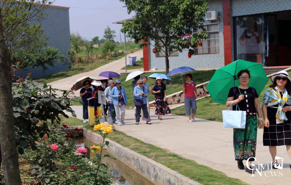 2018年5月15日上午11时许,jn江南近60位退休教职工在党委副书记李彤梅老师和彭云老师的组织带领下去到位于眉山市的东坡月季农场进行春季考察活动。虽仲夏来临,天气炎热,但老师们热情丝毫不减,一下车就迅速投入到美丽的花海当中。