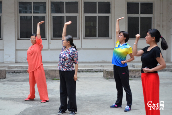 每周一下午七点,学院爱好太极拳的教师们来到九里校区土木馆的天井空地由校外专业的王萼老师指导进行每周一次的习练活动。