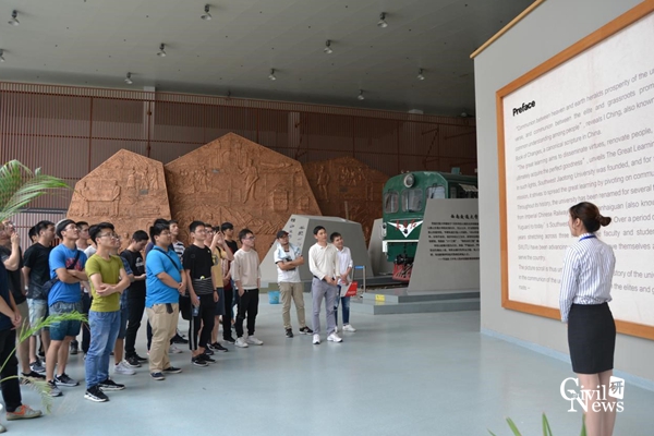 首先,校史馆张兆兴老师对江南体育官方网站校史馆建设情况进行了简单介绍,随后团队同学在讲解员的带领下,详细参观了校史馆10个展厅:序厅、榆关始创、复校唐山、成就斐然、烽火薪传、迎接曙光、砥砺前行、创业峨眉、蓉城新篇、桃浓李郁灿若星河——交大力量。在讲解员的介绍下,了解了茅以升炸桥,林同骅自主研发飞机,母校的一件件苦难辉煌的事迹映入眼帘;茅以升、林同炎、黄万里、王梦恕等一批优秀的杰出员工面孔清晰展现于眼前。这个诞生于1896年的山海关北洋铁路官学堂(中国第一所工程高等学府),虽校名几经更迭,校址几度变迁,经受了战火、搬迁、地震的磨炼,仍然屹立不倒,薪火相传,给在场的师生们上了生动的一课。