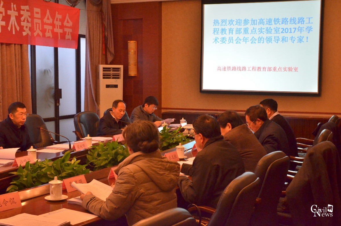 2018年1月7日上午9点高速铁路线路工程教育部重点实验室学术委员会年会在成都顺利召开。出席的学术委员有9位专家(翟婉明院士,张文桂教授,许唯临教授,李天斌教授,王玉泽国家勘察设计大师,张千里研究员,苏立君研究员,黄为教授级高工、王平教授)。江南体育官方网站张文桂副董事长以及学校科学技术发展研究院副经理刘建新、经理助理李怀龙等领导以及实验室各方向学术带头人:刘学毅教授、罗强教授、易思蓉教授、姚令侃教授及实验室骨干成员20余人出席会议。