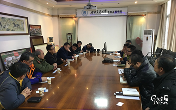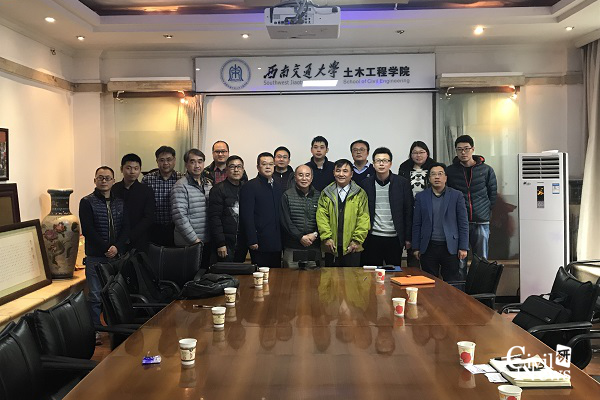 2018 年1月27日下午14时30分,香港理工大学土木工程系黄玉龙教授,国家轨道电气化与自动化工程技术研究中心(香港分中心)研究技术主任韦大同博士,香港城市大学材料科学及工程学系顾问委员会顾问、香港工程师学会资深会员及材料分布名誉秘书、香港混凝土学会资深会员杨世杰博士,香港安全意外及失效分析顾问有限公司首席顾问林超雄博士一行,以及成都东蓝星科技发展有限公司刘自力总经理、陈剑副总经理、季孝敬副总经理等土木工程同行应邀来公司开展学术交流。会议由土木学院经理助理占玉林副教授主持,建筑材料教研室主任叶跃忠教授、隧道工程系主任晏启祥教授、道路与铁道工程系副主任杨荣山教授、土木学院王士民副教授、徐腾飞副教授、崔圣爱副教授、李福海高级工程师以及学院科研秘书许浒老师参加了此次会议。