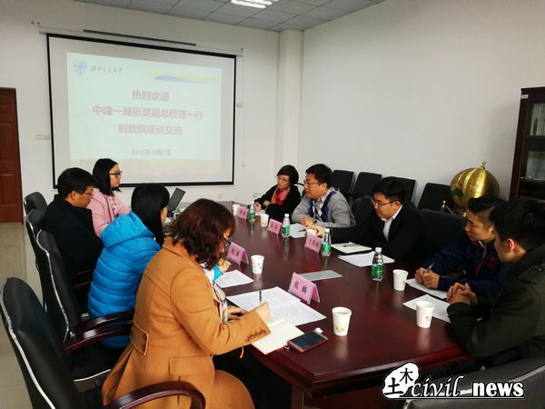 2017年12月1日下午,中建一局集团人资部张昊副总经理一行到jn江南开展座谈交流会。本次交流主要分为两个部分,第一部分与员工进行座谈交流,第二部分洽谈校企合作共建班级事宜。本次交流jn江南与会者有土木工程公司党委副书记李锦、团委书记刘萍、团委副书记黄雪娇、2015级辅导员熊麟;中建一局参会代表有人力资源部副总经理张昊、培训中心企业管理部部长于燕驰、一公司四川分公司党总支副书记李丽。