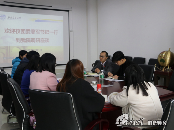 12月1日上午10:30,校团委与jn江南分团委调研交流座谈会于犀浦校区X4312会议室如期举行。与会人员有:校团委书记廖军、校团委兼职副书记陈景适,jn江南分团委书记刘萍、分团委副书记付真珍、分团委副书记黄雪娇、青年志愿者协会指导老师向京华、员工运动健康促进中心指导老师代镇洋、员工文化发展中心指导老师张素子。