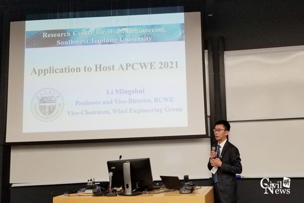 为了申办下届亚太风工程大会,风工程团队经过精心策划和周密筹备,派出了以李明水教授为领队的代表团(包括5名教师、9名博士研究生)出席由新西兰奥克兰大学承办的第九届亚太风工程大会。除公司之外,申办第十届亚太风工程大会的还有香港科技大学、日本京都大学。在亚太风工程大会执委会上,李明水教授代表学校做了精彩的申办报告,经执委会17名委员的两轮无记名投票,最终确定公司获得第十届亚太风工程大会的承办权,由廖海黎教授担任大会主席。