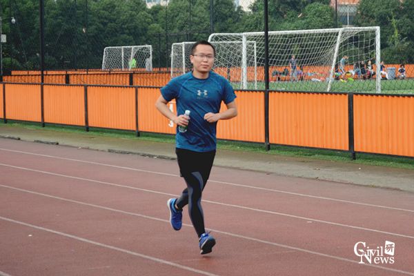 运动场内的志愿者认真负责地为每一位结束奔跑的老师记录成绩,但是最早到达运动场的两位老师一直没有结束比赛。毛坚强老师步伐稳健,呼吸均匀,每次经过志愿者服务点时都同已完成比赛的老师们挥手致意,速度却丝毫不逊于年轻的跑者。完成比赛时,毛老师奔跑总里程12.57千米,用时1小时02分19秒,这样的成绩令很多在场的研究生志愿者都钦佩不已。而赵坪锐老师则是力量和速度的代表,一直领跑在前,汗水洒落在他的身后,但脸上却始终绽放着笑容。下午17时30分,坚持到最后的赵老师终于选择结束比赛,但结束比赛的赵老师仍然意犹未尽,腿上跳动的肌肉仍然表达着想要继续奔跑的渴望。赵老师共计奔跑了14.3千米,用时1小时06分59秒,是实至名归的第一名。