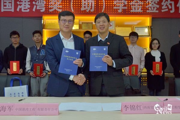 最后,李锦红副书记与孙海军副总经理分别代表校企双方签署了《江南体育官方网站大学——中国港湾奖(助)学金协议》。